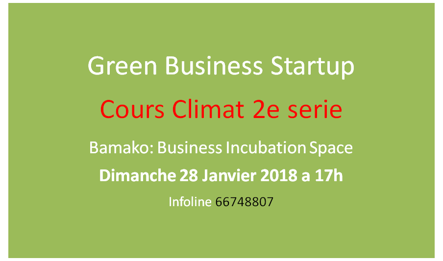 COURS 1 : 28 janvier 2018- (17h-1830) Lieu : Business Incubation Space : YES Inc MALI